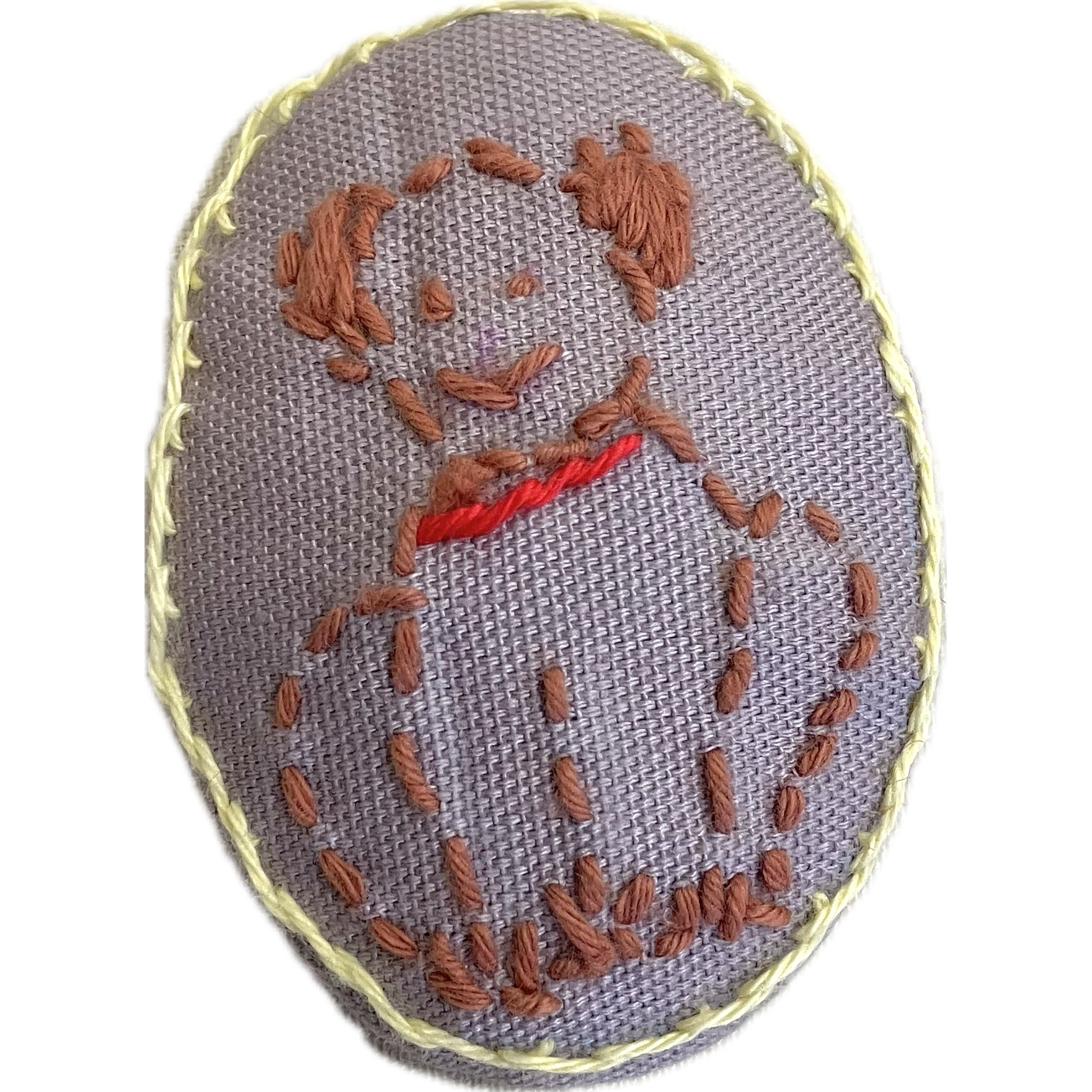 「すましてるワン」刺し子・刺繍ブローチ